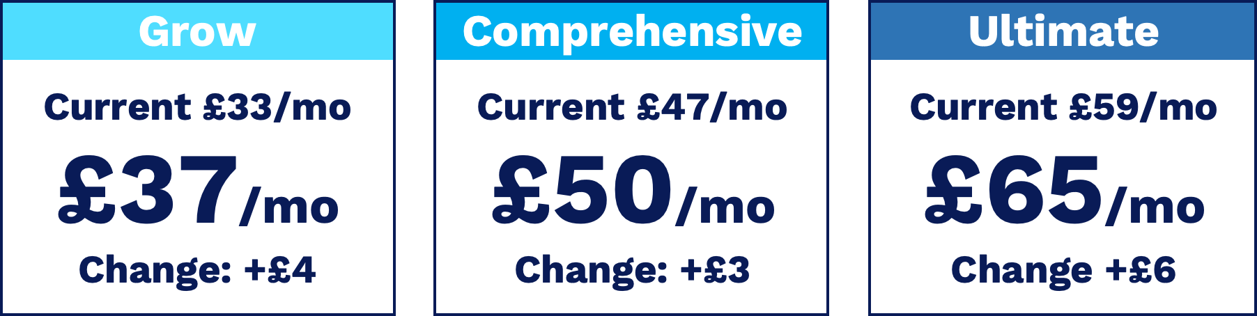 From 1 September 2025, the monthly prices of the Grow, Comprehensive and Ultimate plans will change to: