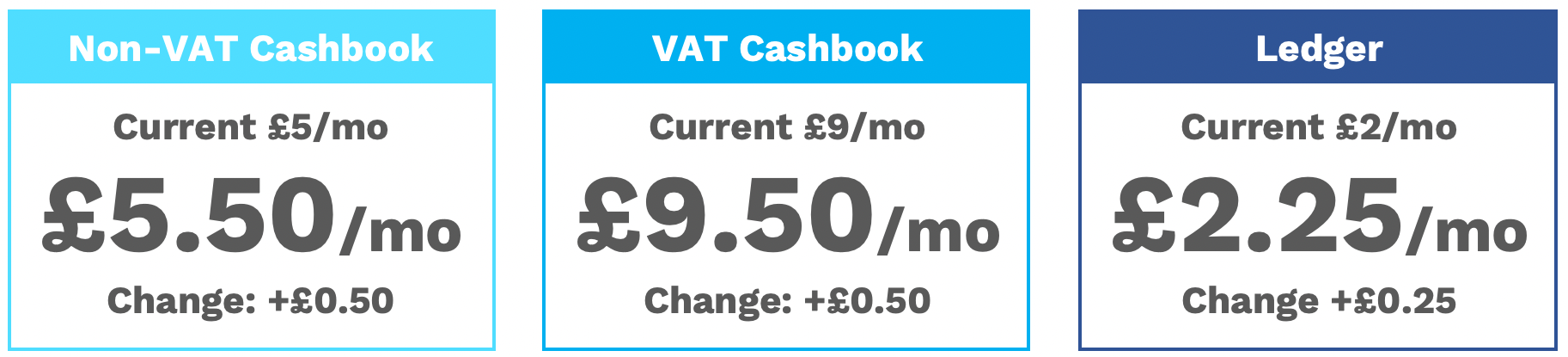From 15 March 2023, the monthly price of Cashbook and Xero Ledger plans is changing as follows: